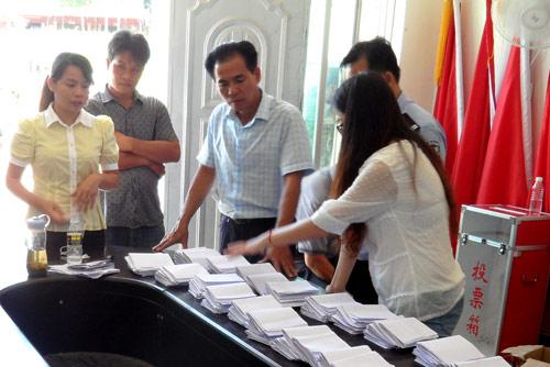 牛开成(左三)到包点村庄开展2013年村级换届选举。