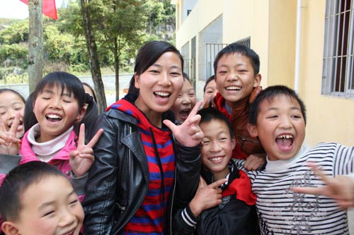 “在这高高的大山里——每个孩子都是一朵小花/只要我们用心呵护/就一定能开出生命的娇艳/每群孩子都是一簇花朵/只要你我也融入其中/就一定能迎来灿烂的春天!”这便是邓丽扎根大山的誓言。
