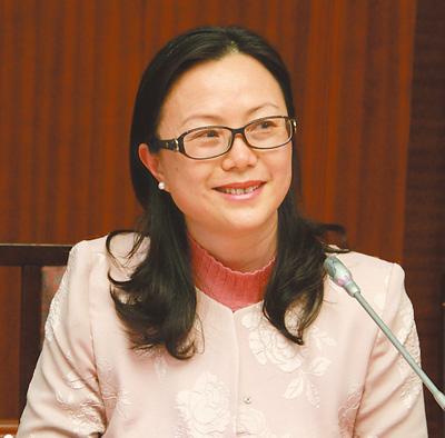 全国三八红旗手标兵、张家港金港镇长江村党委书记郁霞秋在发言中。记者 姚雪青摄