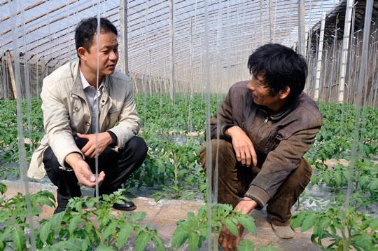 东贾村是因发展集约化、规模化大棚蔬菜种植,摆脱贫困,踏上致富之路的典型村。但在发展一开始,首先就遇到了资金和技术问题。鲍海波极力赞同村委和村民的决定,于是千方百计与信用社联系,为村民提供资金帮助,与村干部、村能人一起到山东寿光学习取经。有了资金和技术帮助,群众种植大棚热情高涨,当年新建大棚50余座,农民年收入达十万余元,村民从中尝到了甜头。