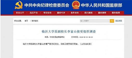临沂大学原副校长李富山涉嫌严重违纪违法,目前正接受组织调查。(山东省纪委)