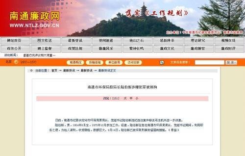 江苏南通环保局原局长涉收受巨额贿赂被刑拘(图)