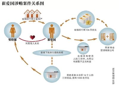 否认情人行贿“指控的前半部分(受贿104万)内容属实,涉及贺晓郁行贿的三套房不属实。”崔爱国说,他在2007年起诉离婚前,就把自己的存款和在西单的两套房,交给了同居的贺晓郁打理,“让她帮助我理财,因此这房子也有我的出资”。