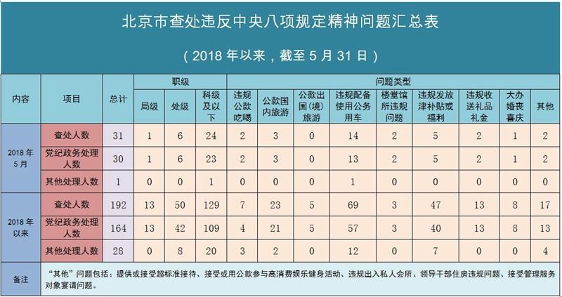 北京:5月份查处违反中央八项规定精神问题31起