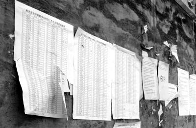 2月3日,柏乡县人力资源和社会保障局的墙上,仍张贴着招聘考试的笔试成绩。本报记者 刘一丁 摄