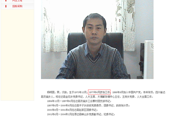 目前,四川达县金石乡官网已将该乡党委书记杨明国的简历资料修正为“生于1973年12月,1997年6月参加工作”。