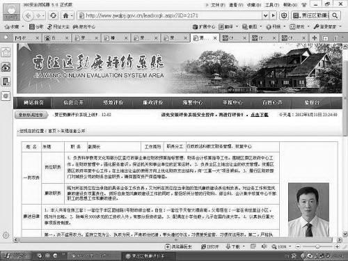 不过贾汪并非“勤廉评价系统”的原创者。在网上能搜到,甘肃省张掖市也有一个勤廉度评价系统,两个网站“长得极像”。这个网站于2011年3月正式上线,至今尚在运转,网页上看到公众对干部的廉政评价分值。凡是贾汪的网站中有的内容,在这里大都能找到身影。