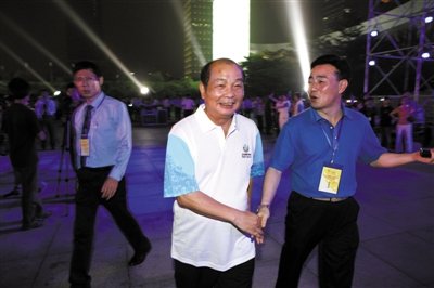 2011年5月4日,深圳第26届世界大学生夏季运动会倒计时100天誓师大会,深圳原副市长梁道行进入会场。图/CFP