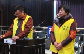 12月10日,衡阳市中级人民法院,顾湘陵(左)和妻子吴利君当庭接受庭审。