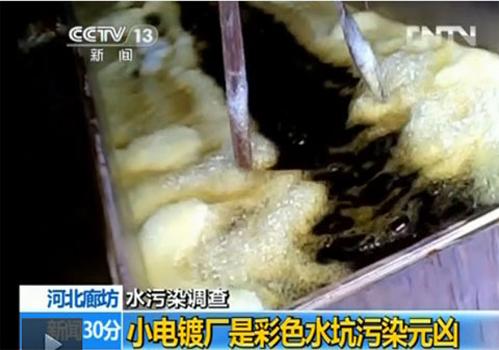 人民网北京5月22日电 据中央电视台新闻频道报道,近日,在河北省廊坊市的霸州市(县级市)和永清县,记者发现彩色污水坑遍布在许多村庄周围。这些污水来自于周围小电镀厂排放的电镀水,其中含氰化物、六价铬等许多有害物质。很多厂主表示,只要交上钱,如果有大检查,当地环保局就会提前通知他们。附近村民对记者说:“没人管,上央视,上《焦点访谈》没准管事儿。”
