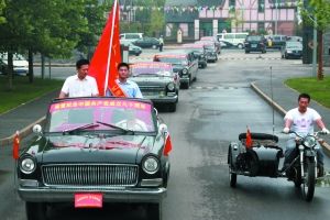 昨天,怀柔区老爷车博物馆外,包括新中国第一辆国产红旗轿车在内的19辆红色老爷车身披红旗整装一新。这些红色老爷车作为“永远跟党走,聚力新怀柔”主题党日活动的重要成员,通过寻访形式,让更多的学生团员、党员了解党的历史,庆祝建党90周年。(本报记者 廖爱玲 通讯员 彭亚娟 刘江洋摄影报道)