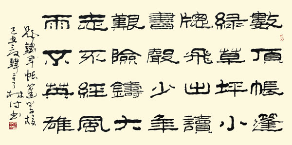 去年,《韩亨林楷书、隶书、魏碑、行草书〈白云山记〉等系列书法集》正式出版发行,在书法界和社会上引起很大反响。当今书坛元老沈鹏、欧阳中石、李铎、刘艺和现任中国书法家协会主席张海先生阅读后亲自撰写评语,给予极高评价:“韩亨林君,八法专工,笔力遒劲,清隽流通,静如处子,动若游龙”;“古不乖时,今不同弊”;“诸体皆善,尤以隶楷为佳,其书取法高古,独辟蹊径”;“用笔轻松自如,结字生动活泼,与娓娓道来之文章相匹配,诚为合作”;“实乃当代文学名篇与书法艺术结合的典范之作”。对于这些赞誉,韩亨林更视为一种鼓励和鞭策。他以诗言志,总结自己的书法人生:“自是清高为才多,从来后浪逐前波。文山墨海游无尽,我书半生不见我。”