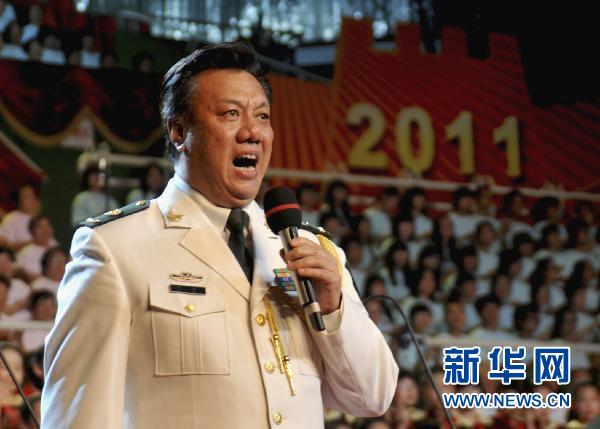 6月21日,在北京石景山体育馆举办的“庆祝建党90周年红歌会”上,著名歌唱家刘斌演唱歌曲《当兵的人》。当日,“颂歌献给党”石景山区庆祝中国共产党成立90周年红歌会在北京市石景山体育馆举行,来自驻区机关、部队、院校、社区居民等数千人参加了红歌演唱活动。红歌会分为三个篇章,以舞蹈、独唱、小合唱、大合唱等多种形式,歌颂中国共产党90周年的光辉历程。新华社发(李文明 摄)