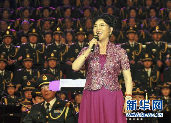 6月21日,在北京石景山体育馆举办的“庆祝建党90周年红歌会”上,著名歌唱家耿莲凤演唱歌曲《祖国一片新面貌》。当日,“颂歌献给党”石景山区庆祝中国共产党成立90周年红歌会在北京市石景山体育馆举行,来自驻区机关、部队、院校、社区居民等数千人参加了红歌演唱活动。红歌会分为三个篇章,以舞蹈、独唱、小合唱、大合唱等多种形式,歌颂中国共产党90周年的光辉历程。新华社发(李文明 摄)