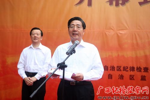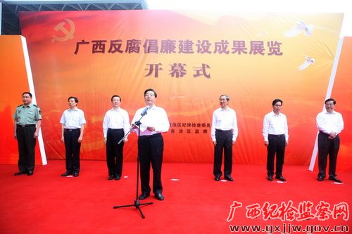 郭声琨在仪式上说,在喜迎建党90周年之际,举办这次展览,集中展示我区近年来反腐倡廉建设的新成果,用廉洁自律的先进模范激励人,用违法乱纪的反面典型 警示人,用《廉政准则》的严格要求规范人,这必将对推动我区反腐倡廉建设深入开展,提高广大党员干部廉洁自律意识,营造廉荣腐耻的社会氛围起到积极作用。