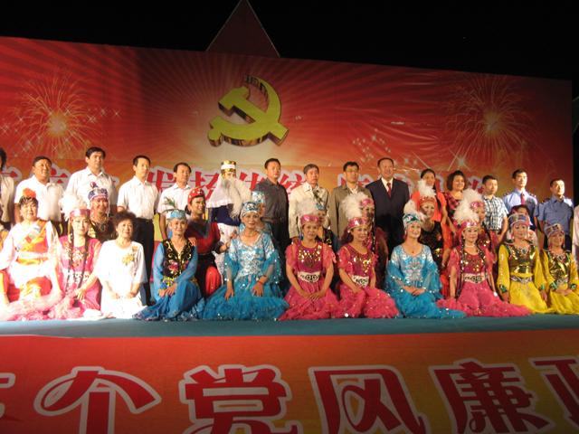 7月22日晚,“阿勒泰地区第13个党风廉政教育月廉政专场晚会”在阿勒泰市金山文化广场隆重上演。地委委员、纪委书记、政法委书记杨振海,地区人大工委副主任倪绍继、地区政协工委副主任叶尔扎提等地市四套班子领导、纪委班子成员和有关部门的负责同志,与来自地、市机关干部和各族群众500余人共同观看了演出。地区纪委副书记巴合提在演出前致词,晚会在歌伴舞《春天的故事》中拉开帷幕,随着民乐合奏、廉曲独唱、廉政小品、民族舞蹈等节目的纷纷呈现,引起了观众的阵阵贺彩,不断把晚会引向高潮。整场晚会历时1个半小时,融合13个不同类型的节目,让各族干部群众在感受艺术魅力的同时,进一步受到廉政文化的熏陶。