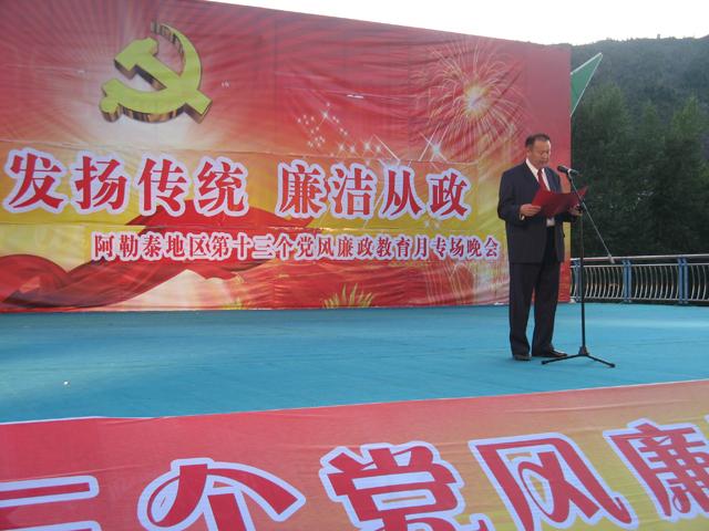 作为教育月期间的系列活动之一,专场晚会始终突出“坚定信念、发扬传统、廉洁从政”这一主题,唱响主旋律,弘扬新风气,建设廉文化,向建党90周年献礼,为地区党风廉政建设添彩。晚会得到了地区纪委主要领导的高度重视,地、市纪检监察机关广泛动员、精心组织,从地、市机关和团体报送的各类节目中优中选优,整场晚会策划、排演和人员组织等工作,全部由地、市纪检监察机关领导和干部负责;演职人员全部是机关人员和文艺爱好者,通过歌舞、小品、独唱等艺术形式,进一步展示了地区党风廉政建设的新风采,引导教育广大党员干部筑牢拒腐防变的思想防线,形成廉荣贪耻的道德风尚,营造崇廉尚廉的文化氛围,激励各族干部群众扬正气、促和谐,共同开创地区党风廉政建设的新局面,为阿勒泰实现跨越式发展和长治久安保驾护航。