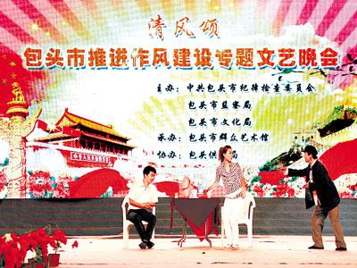 今年是内蒙古自治区包头市“作风建设推进年”。为进一步营造风清气正的干事环境和“以廉为荣、以贪为耻”的社会氛围,包头市纪委、监察局于近日举办了“清风颂”推进作风建设专题文艺晚会。图为晚会现场。(焦林峰 赵利珍 摄影报道)