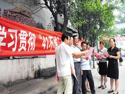 连日来,河南省平顶山市新华区纪检监察干部走乡进村宣传贯彻《农村基层干部廉洁履行职责若干规定(试行)》,查找和解决乡村干部在廉洁履职方面存在的问题,纠正并严肃处理违反“41个不准”的行为。图为区纪委工作人员在高庄村街头向群众发放宣传资料。(王建勋 刘淑慧 摄)