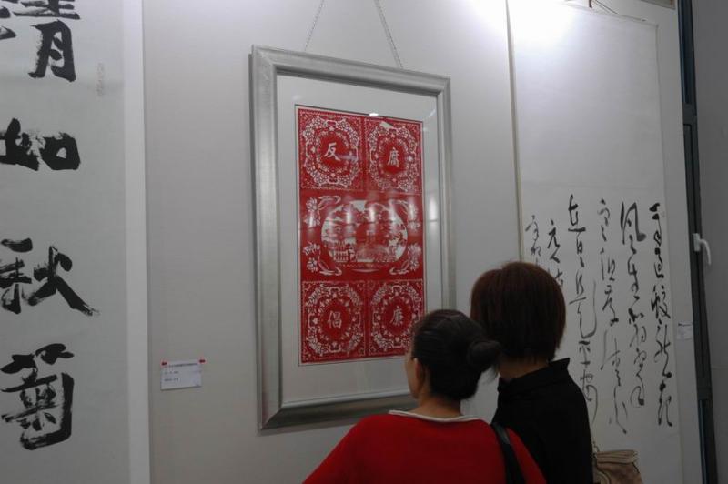 连云港非物质文化遗产传承人王老三的剪纸作品吸引了不少观展群众的兴趣