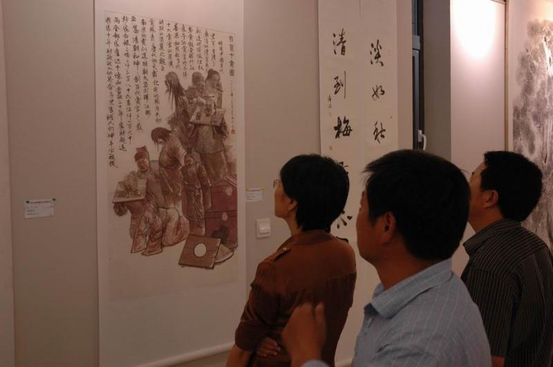 江苏省赣榆县近日举办反腐倡廉书法美术作品展,展览共征集到美术、书法作品近200件,作品形式多样,寓意深刻。以不同的艺术语言讴歌先进事迹,贬斥腐败现象。(殷杰)
