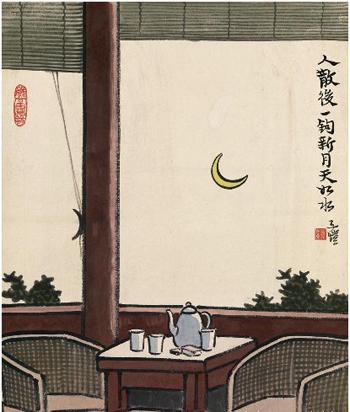 丰子恺作品《人散后,一钩新月天如水》