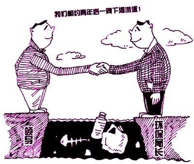 浙江省副省长卢子跃日前在视察苍南县当地河道整治工作时表示,两年后再到龙港,协同环保局局长一同下河游泳。苍南县环保局龙港分局局长肖建峰回应,会将副省长的话转化为动力和压力,更加努力地整治河道及两岸环境。同时他表示争取在两年内,邀请卢副省长与其一同下河游泳。(摘自《法制日报》)