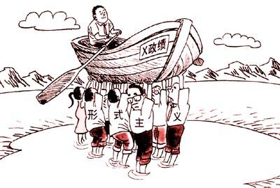 不尊重客观规律和基本事实的形式主义不是以为人民服务为目的,而是以公权力为依托,以滥用公共资源为手段,以愚弄群众为目的的政治表演。(摘自《人民论坛》)漫画作者:任潭