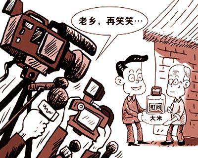 近日,广州市市长陈建华直言,“密切联系群众很容易走过场,一说密切联系群众,就有领导带人到五保户、贫困户家里去慰问,弄袋大米、两瓶油、一床棉被,去走一走,看一看。这基本上可以说是形式主义。”陈建华笑言,他曾在贫困地区工作十年多,“天天干这事”。领导假装在慰问,民众假装很欣慰。陈建华一语道破天机。(摘自《法制日报》)漫画作者:朱慧卿