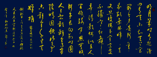 自幼酷爱书法,学习二王、颜、柳、赵、米、文等名家帖,专练过祝允明、王铎的草书等,也学过现代于右任等名家。每天都学习和写字四小时以上,现在主要写行草书。参加全国书法大赛曾获多项金奖、一等奖、特等奖等。