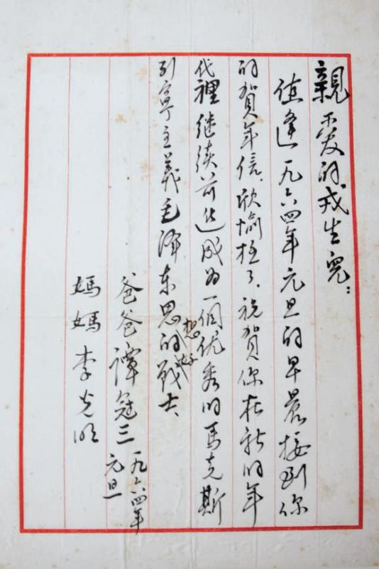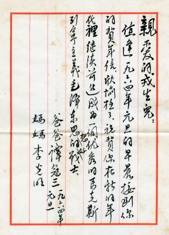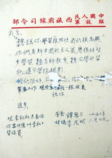 直到1952年8月7日,谭戎生才收到父母写来的第一封家书——