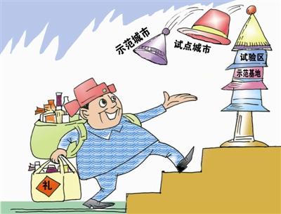 媒体调查发现,在我国东北地区,共有多少不同层次、类别的试点几乎没人说得清,但一个城市戴多顶“试点帽子”的现象却普遍存在。对于各级地方政府来讲,“试点帽子”意味着资金、政策,也是可圈可点的政绩工程。因此,投入力量争试点、要项目,早已成为当地“跑部进京”和“提钱入试”的重要内容。