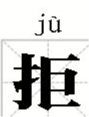 拒:形声字。从手,从巨,本义为不要任何东西。“手”和“巨”联合起来表示“用手抵住任何事物”、“不拿任何物品”,有拒绝之意。有典故于成龙“立檄拒礼”。
