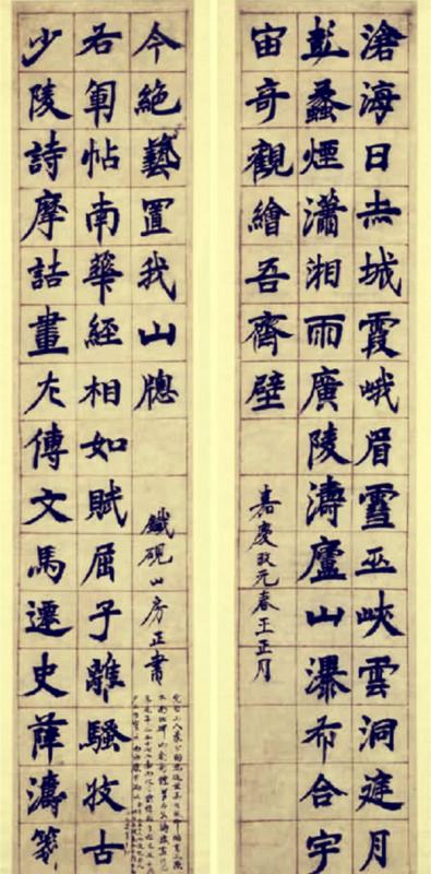 下联则包含了九位名人及其绝艺。上联写景,天下奇观,历历在目;下联论文,古今奇书,皆藏我胸。堪称奇联!