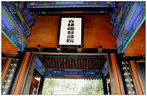 河北保定市是清代直隶总督驻地,直隶总督是清朝九位封疆大臣之一,总管直隶的军民政务,也就是今天的天津、河北大部与河南、山东小部,地处京畿要地。曾国藩、李鸿章师生二人都曾做过直隶总督。因此在这里,上联就讲直隶省所管辖区域,是北吞大漠,南亘黄河,非常广阔,并且是西岳东瀛一屏障,拱卫首都,十分重要;下联则讲是其职能与曾经任职的两位名臣。
