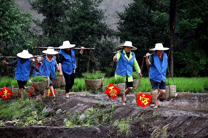 春雷滚滚雨潇潇 披蓑戴笠运秧苗
