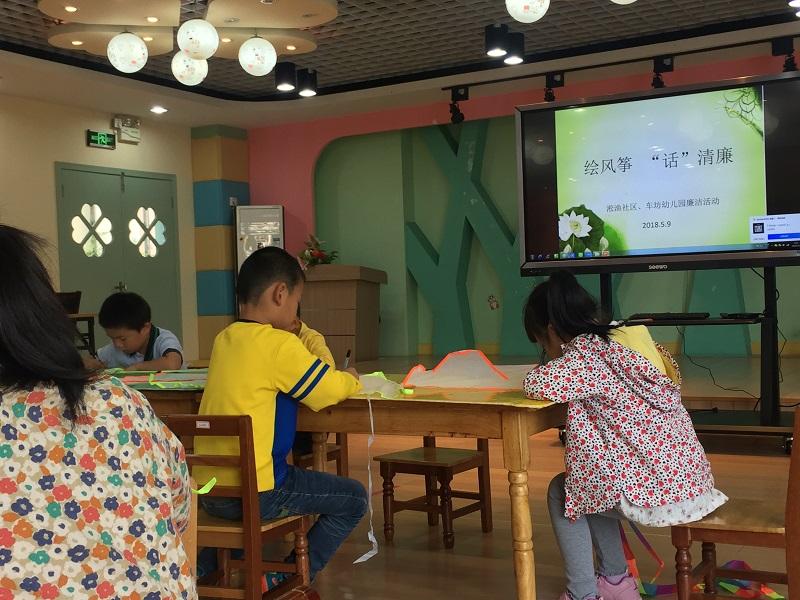 老师将社区准备的空白风筝分发给各位小朋友,孩子们拿到笔开始在风筝上画出心中“廉洁”的样子。有的画莲花、荷叶,有的选择画了自己的手印,还有选择画竹子的,形象生动又极富童趣。