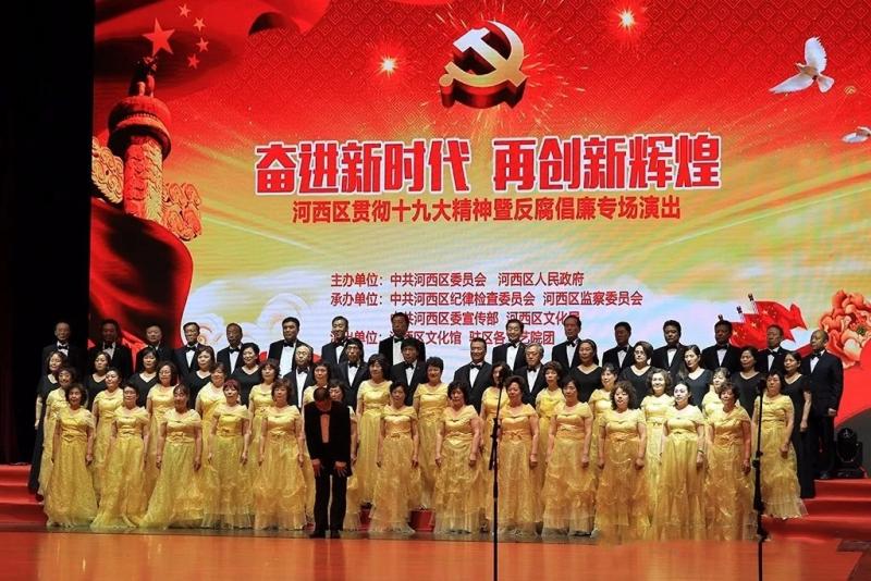 日前,由天津市河西区委、区政府主办,区纪委监委、区委宣传部协办,区文化局、区文化馆共同承办的“奋进新时代,再创新辉煌”贯彻十九大精神暨反腐倡廉专场演出在中华剧院举行。