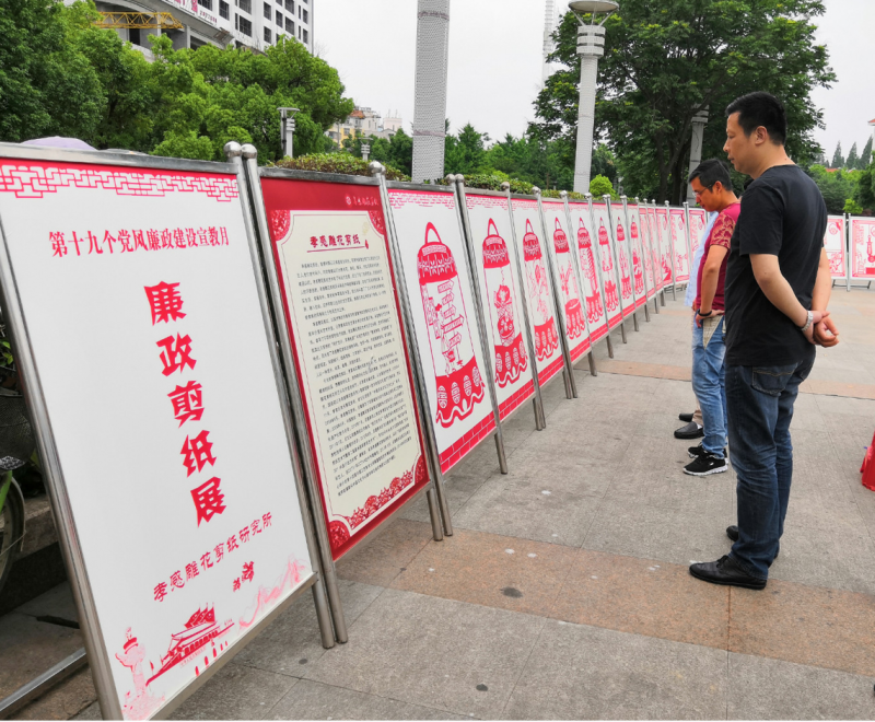 雕花剪纸是孝南人引之以傲的艺术形式。该区围绕《监察法》、“八项规定精神”、《中国共产党党内监督条例》、《中国共产党问责条例》等内容,设计制作22幅主体鲜明、别具特色的廉政雕花剪纸作品,并在广场、社区、街道、乡村巡回展出。