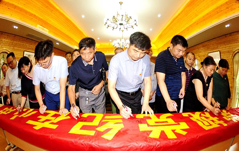 本网讯(傅永红 周晓明)日前,江苏省仪征市枣林湾枣园清风苑,来自该市真州镇永庆村的30名乡村党员,面对鲜红的党旗,重温入党誓词,在党规党纪在心中横幅上签名,接受廉政教育,迎接党的生日。