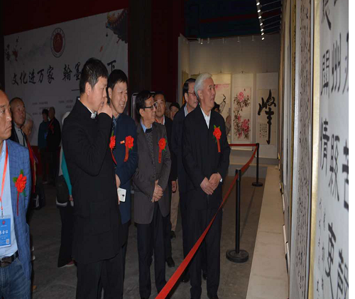 中央军委机关事务管理总局原政治委员、中国书法家协会会员王成志将军宣布展览开幕;中国文化进万家工作委员会首席顾问、国务院港澳办书画协会原主席张保才,中国文化进万家工作委员会主任、华夏文化书画专家委员会副主任武振江,中央国家机关书法家协会副秘书长、国家统计局离退休局原局长江永明分别为获奖书画家颁发了证书并合影留念;戒台寺景区总经理史广学在活动上介绍了戒台寺的历史和概况,他欢迎艺术家们做客戒台寺,欢迎大家经常来写生创作,来欣赏优美的自然风光和感受深厚的禅意文化;中国科学院地理科学与资源研究所研究员、北京市门头沟区原人大副主任谭杰深入介绍了门头沟区的区位优势和丰富的历史文化自然资源,呼吁大家多多关注门头沟区;来自“三国故地,六朝古都”的临漳县政府代表招商局副局长王龙飞,县农广校副校长任平伟到会祝贺大会开幕式胜利召开,推介了临漳旅游文化资源。