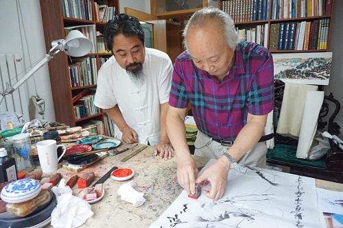 张联峰告诉记者,二十年前的一次书画研讨会上,认识了现在的恩师刘永泰,刘老更是欣赏他的书画天赋,当即提出收徒的想法,有着深厚书法造诣的张联峰拜在刘老门下,从此与齐派结下了不解之缘,成为白石老人的再传弟子。