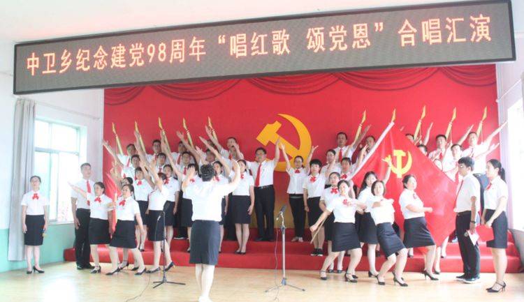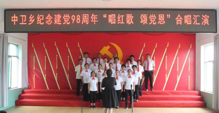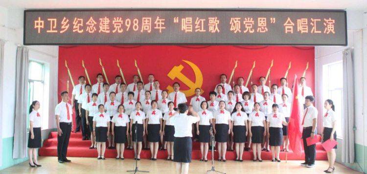 清廉网讯(王子双)行程万里,不忘来路,饮水思源,不忘初心。为隆重纪念中国共产党成立98周年,充分展示全乡党员干部昂扬的精神面貌,激励全乡党员干群铭记党恩、砥砺前行,6月28日下午,中卫乡隆重举办“唱红歌、颂党恩”合唱汇演,来自全乡的6支合唱队400余名党员,用一首首脍炙人口的红色曲目,重温党的光辉历史,歌颂党的恩情,为“美丽中卫”建设,注入精神动力、点燃奋进激情。