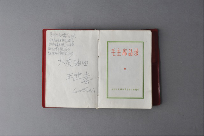 1966年国庆节期间,铁人应邀到北京人民艺术剧院做报告,演员李光复在后台见到铁人,就请他签名,铁人就在这本毛主席语录上写下了内涵丰富、充满哲理的“五讲”:讲进步不要忘了党,讲本领不要忘了群众,讲成绩不要忘了大多数,讲缺点不要忘了自己,讲现在不要割断历史。铁人的“五讲”,体现了他对党忠诚、心系群众、谦虚谨慎、胸怀博大、实事求是的高尚品质。