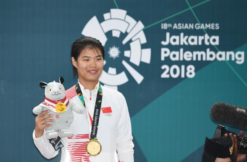 8月20日,在第18届亚运会女子多向飞碟决赛中,中国选手张鑫秋获得冠军。
