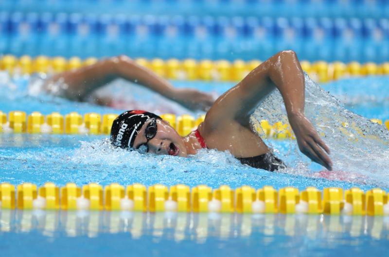 8月19日,在第18届亚运会女子1500米自由泳决赛中,中国选手王简嘉禾以15分53秒68的成绩夺冠。王简嘉禾在比赛中奋力前行。