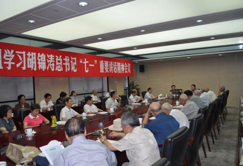 陕西省纪委离退处党支部组织老同志集中学习胡锦涛同志“七一”重要讲话
