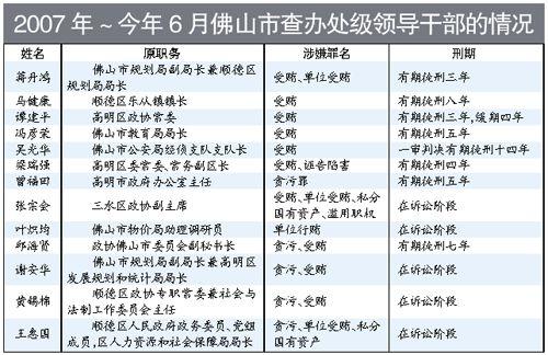 检察机关首度公布了2007年至今佛山全市被查处的13名处级官员的名单以及现况。