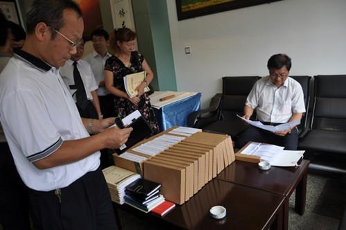 检查组到示范点查阅资料