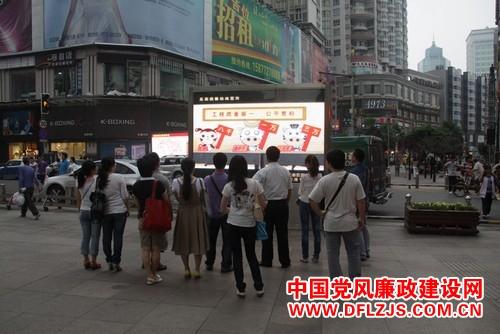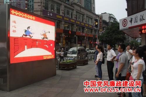 “牛做工程的确好,可惜钱被吞掉了,贪赃枉法坑大家,害群之马要除掉。贪赃枉法必被查……堂堂正正做人,清清白白做官;扎扎实实做事,公公正正执政。” 这不是《动物世界》,也不是演讲报告,而是在广西柳州市五星步行街电子屏上播放的一部廉政短片。为更好地拓宽廉政宣传渠道,丰富廉政文化建设载体,近日柳 州市城中区纪委、监察局联合城中区科技局、柳州市第二职业技术学校动漫相关专业的老师和同学,制作了两部廉政短片、二十幅廉政广告和六十幅反腐倡廉漫画, 从近日起至7月1日在五星步行街和龙城路地段定点播放。